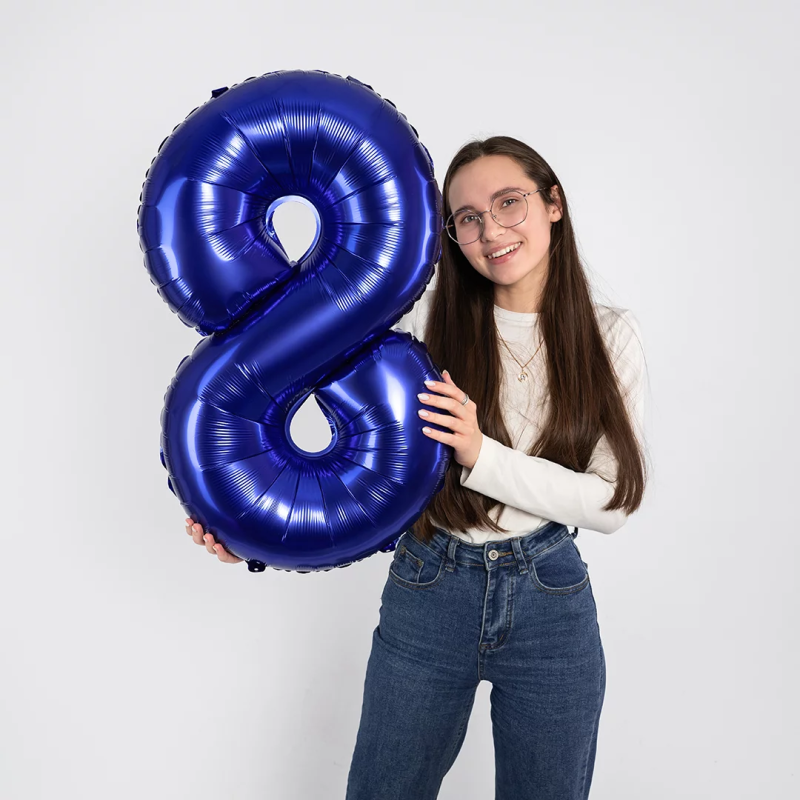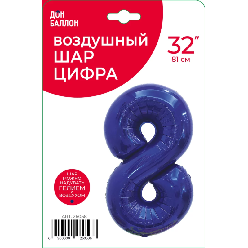 Шар (32''/81 см) Цифра, 8, Темно-синий, 1 шт. в уп., 26058