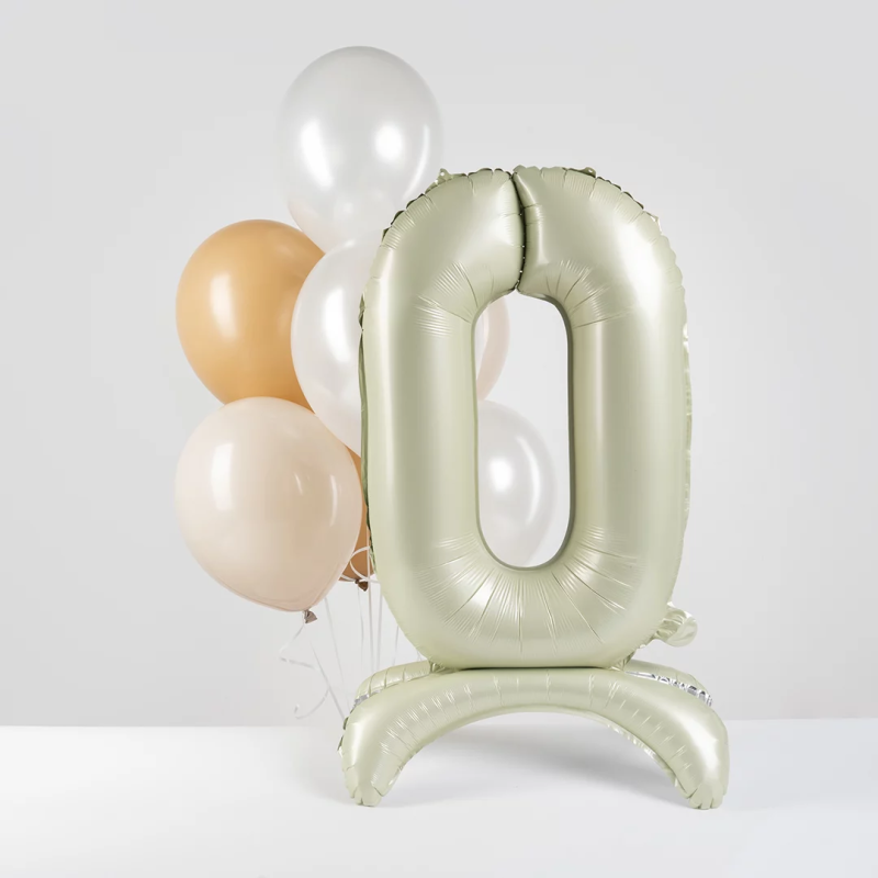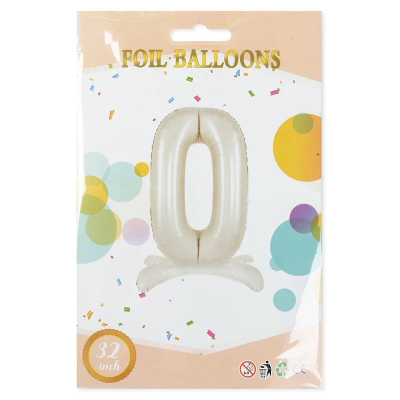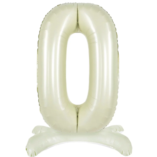 Шар (32''/81 см) Цифра на подставке, 0, Белый песок, 1 шт. в уп., 27510