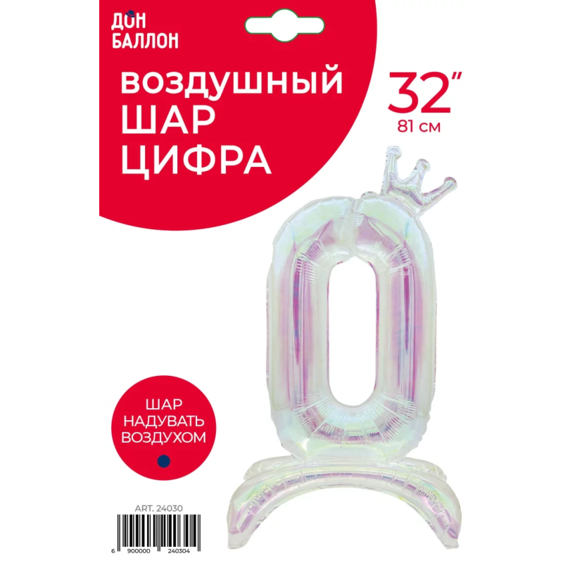 Шар (32''/81 см) Цифра на подставке, 0 Корона, Хамелеон, Хамелеон, 1 шт. в уп., 24030