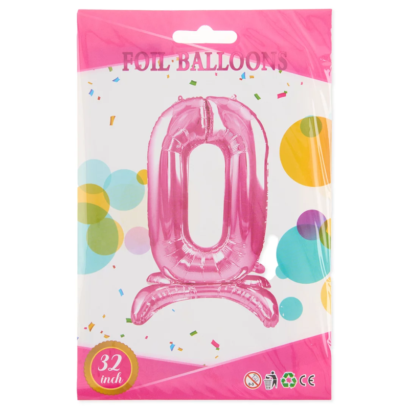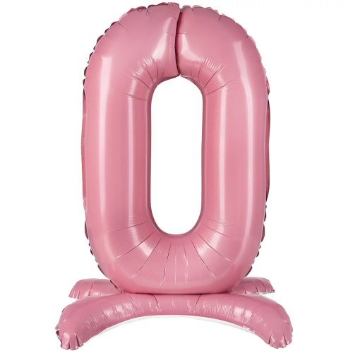 Шар (32''/81 см) Цифра на подставке, 0, Розовый, 1 шт. в уп., 24140