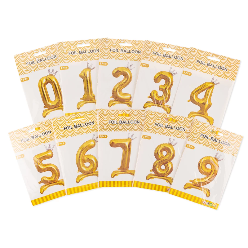 | Линейка | СмайлБерри Шар (32''/81 см) Цифра на подставке, Серебристая корона, Золото |