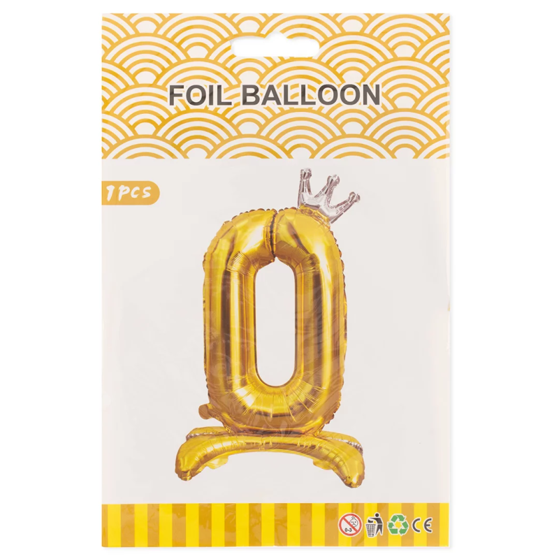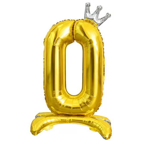 Шар (32''/81 см) Цифра на подставке, 0 Серебристая корона, Золото, 1 шт. в уп., 24180