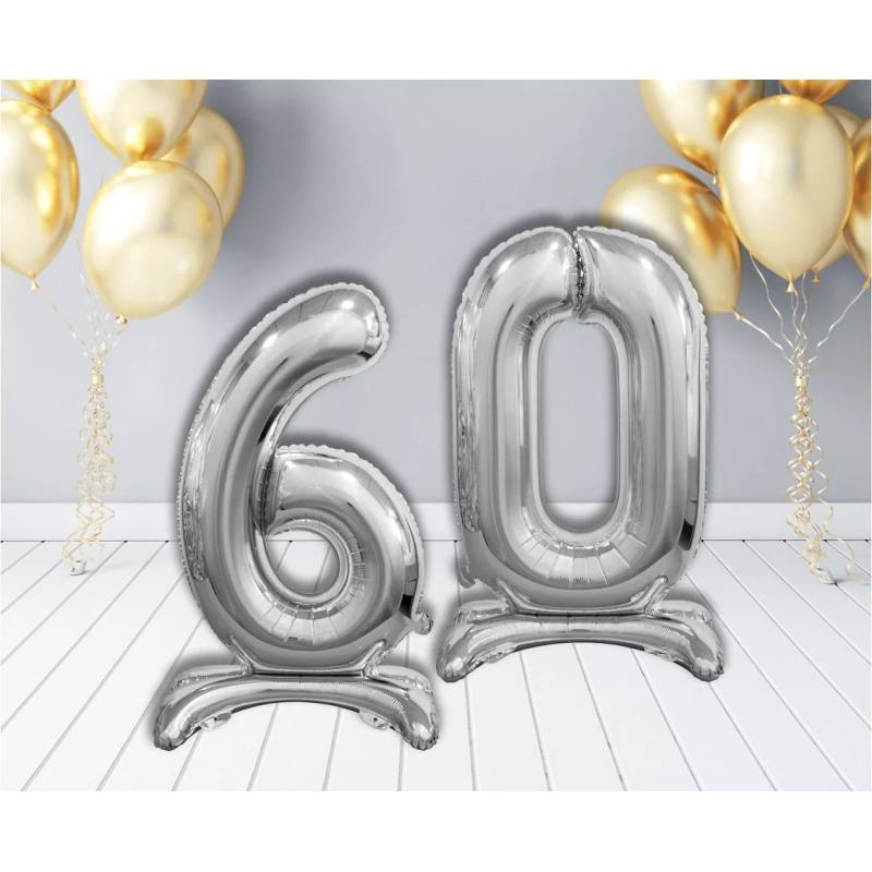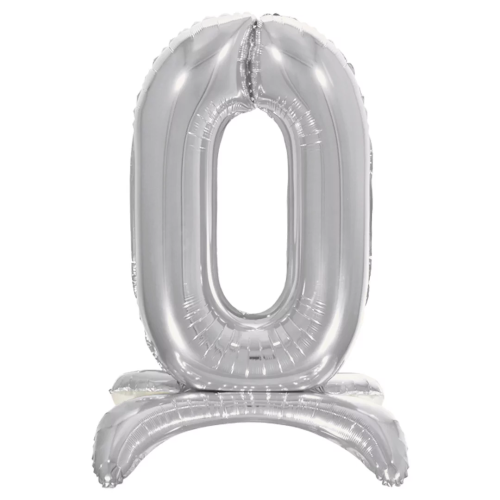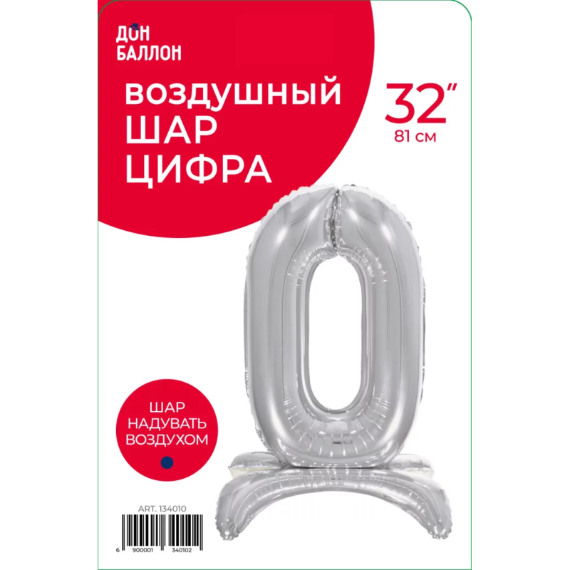 Шар (32''/81 см) Цифра на подставке, 0, Серебро, 1 шт. в уп., 134010