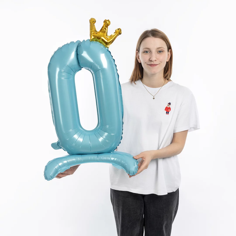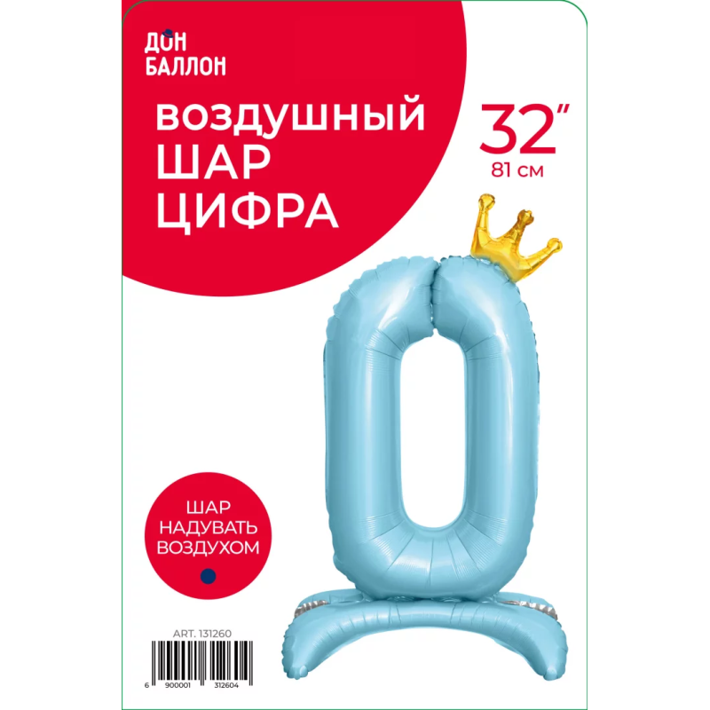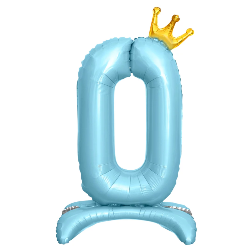 Шар (32''/81 см) Цифра на подставке, 0 Золотая корона, Голубой, 1 шт. в уп., 131260