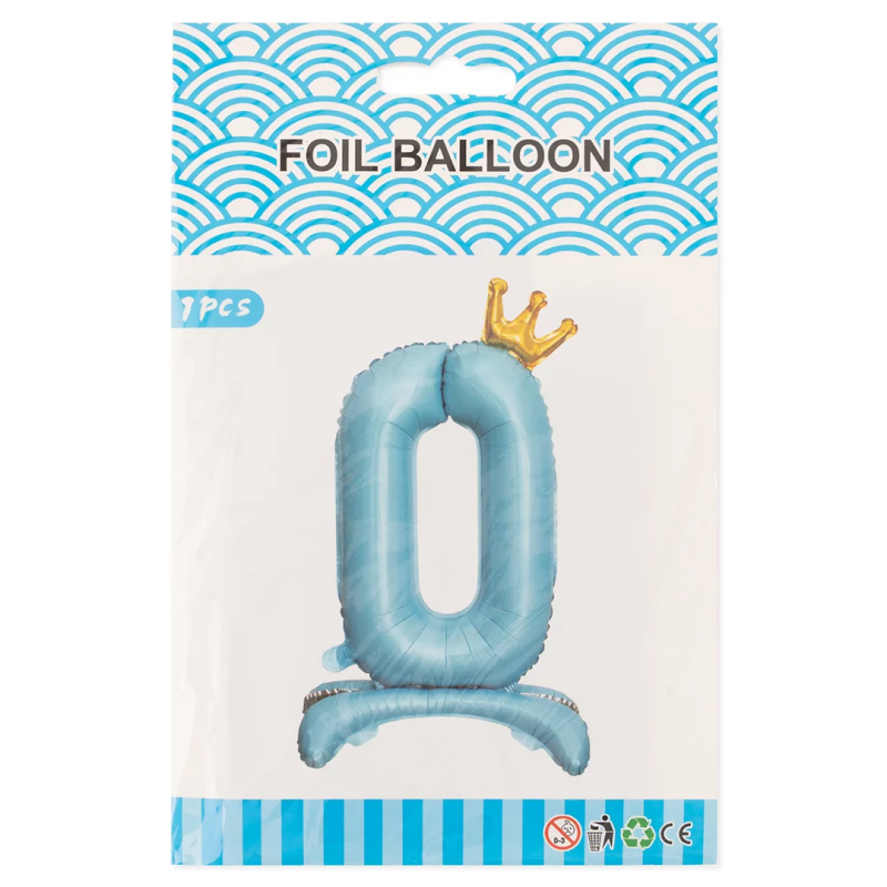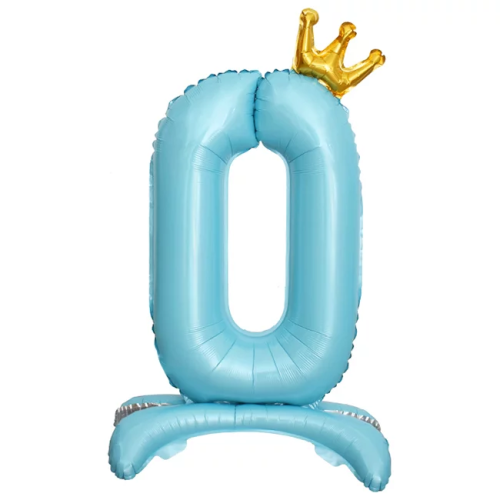 Шар (32''/81 см) Цифра на подставке, 0 Золотая корона, Голубой, 1 шт. в уп., 24200