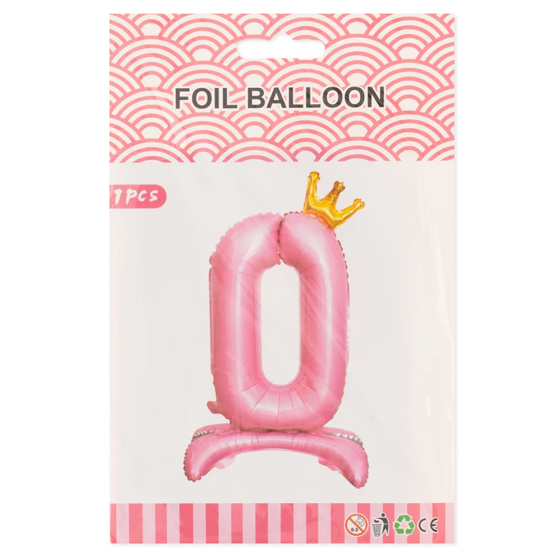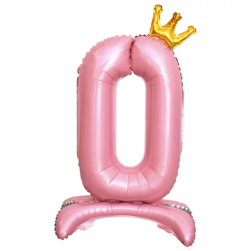 Шар (32''/81 см) Цифра на подставке, 0 Золотая корона, Розовый, 1 шт. в уп., 24190
