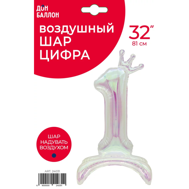 Шар (32''/81 см) Цифра на подставке, 1 Корона, Хамелеон, Хамелеон, 1 шт. в уп., 24031