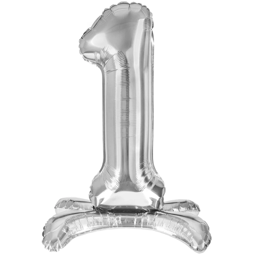 Шар (32''/81 см) Цифра на подставке, 1, Серебро, 1 шт. в уп., 24131