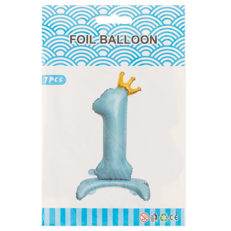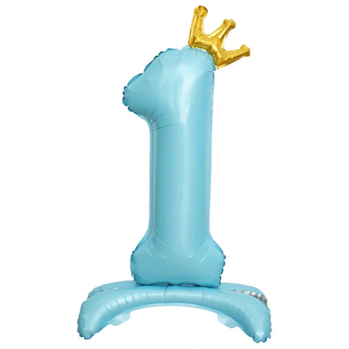 Шар (32''/81 см) Цифра на подставке, 1 Золотая корона, Голубой, 1 шт. в уп., 24201