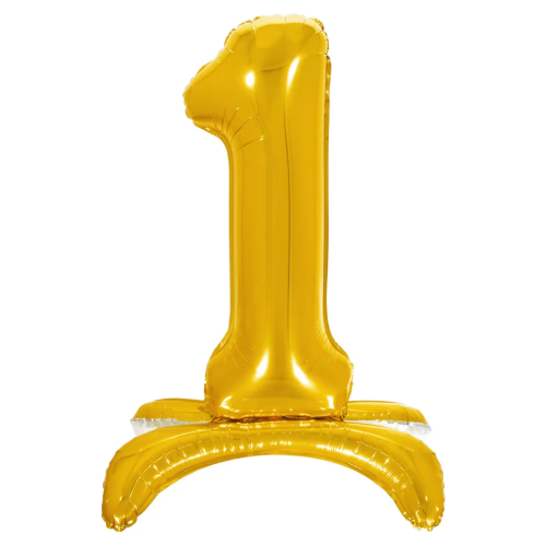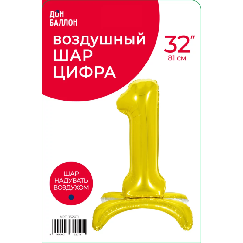 Шар (32''/81 см) Цифра на подставке, 1, Золото, 1 шт. в уп., 132011