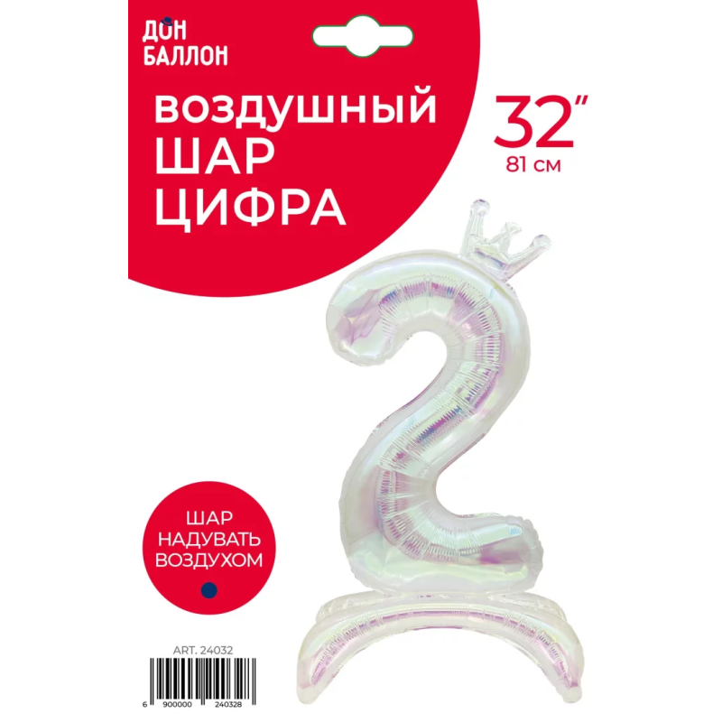Шар (32''/81 см) Цифра на подставке, 2 Корона, Хамелеон, Хамелеон, 1 шт. в уп., 24032