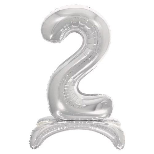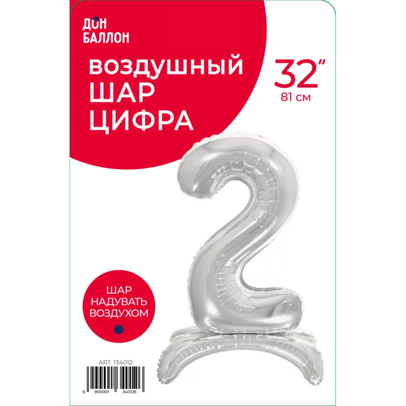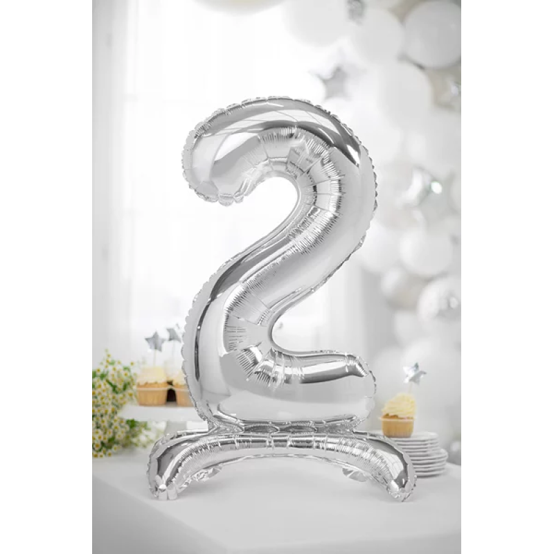 Шар (32''/81 см) Цифра на подставке, 2, Серебро, 1 шт. в уп., 134012