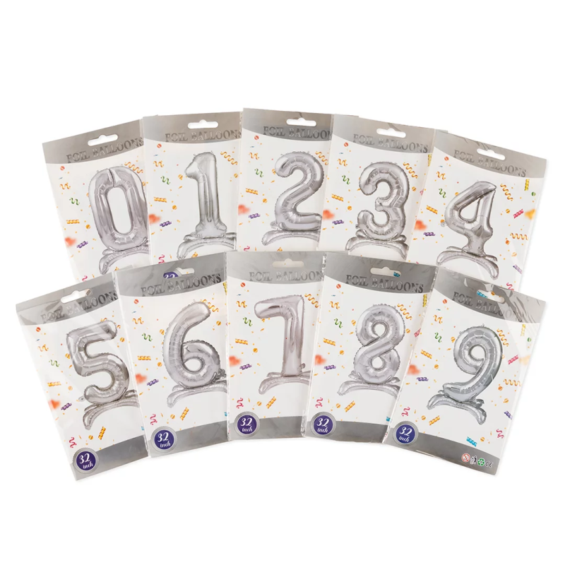 | Линейка | СмайлБерри Шар (32''/81 см) Цифра на подставке, Серебро |