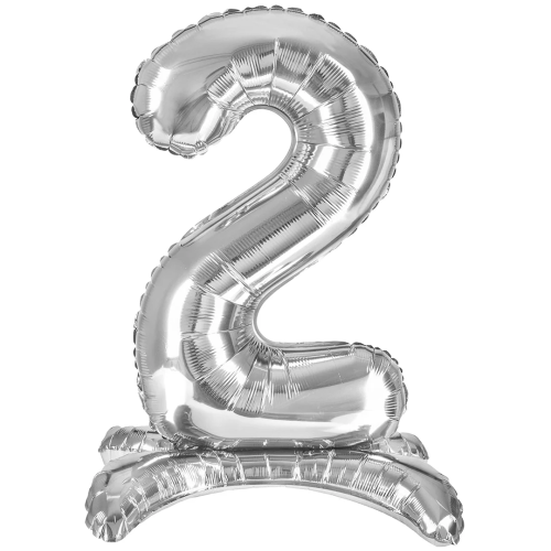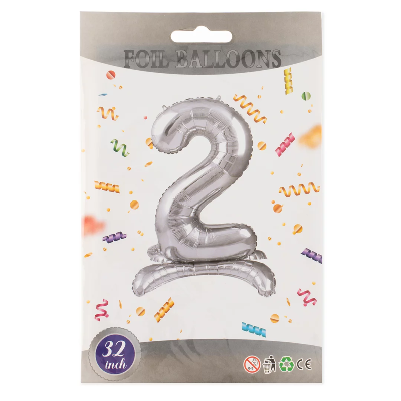 Шар (32''/81 см) Цифра на подставке, 2, Серебро, 1 шт. в уп., 24132