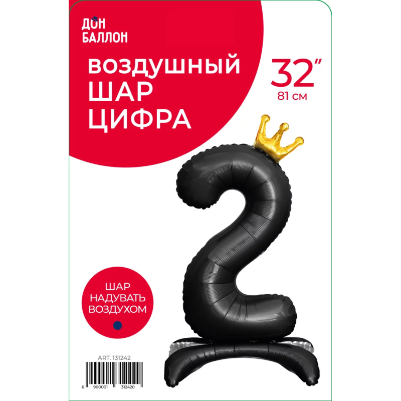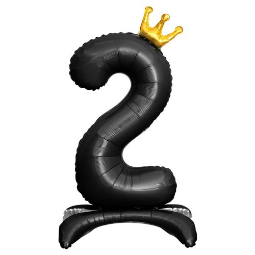 Шар (32''/81 см) Цифра на подставке, 2 Золотая корона, Черный, 1 шт. в уп., 131242