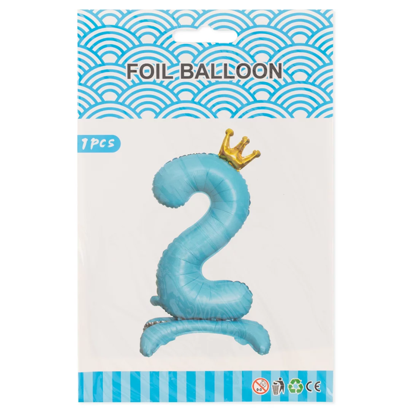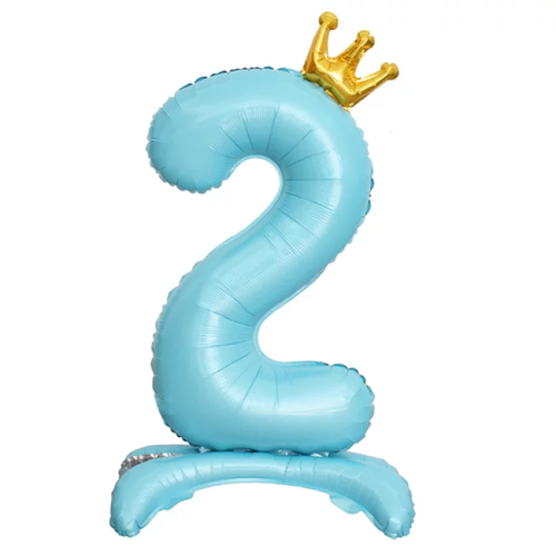 Шар (32''/81 см) Цифра на подставке, 2 Золотая корона, Голубой, 1 шт. в уп., 24202