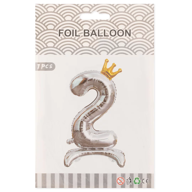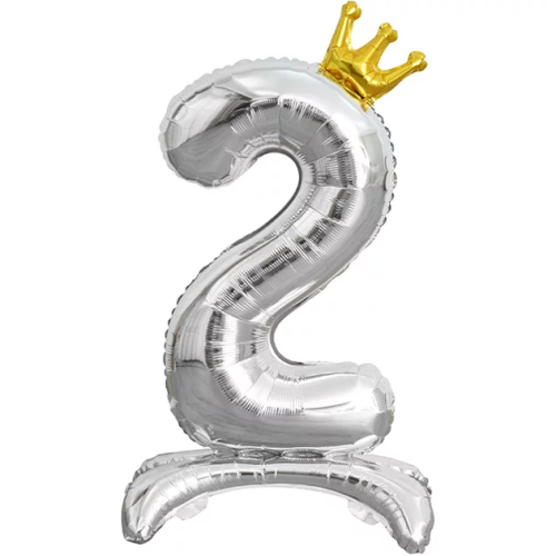 Шар (32''/81 см) Цифра на подставке, 2 Золотая корона, Серебро, 1 шт. в уп., 24172