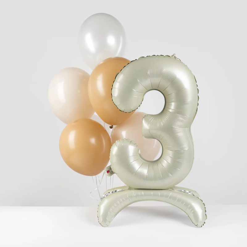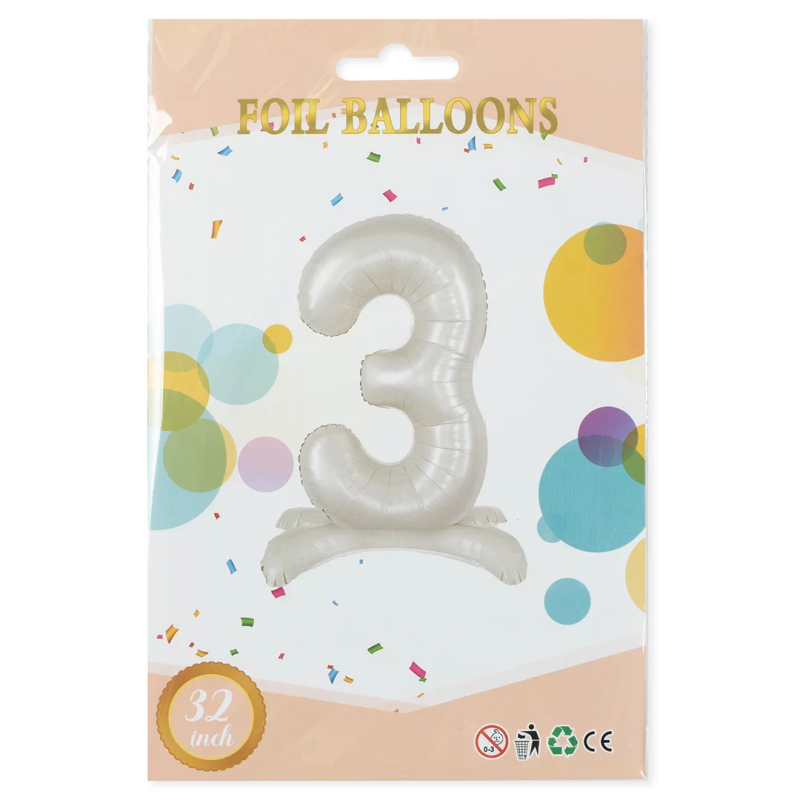 Шар (32''/81 см) Цифра на подставке, 3, Белый песок, 1 шт. в уп., 27513