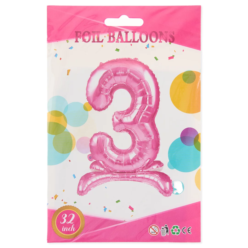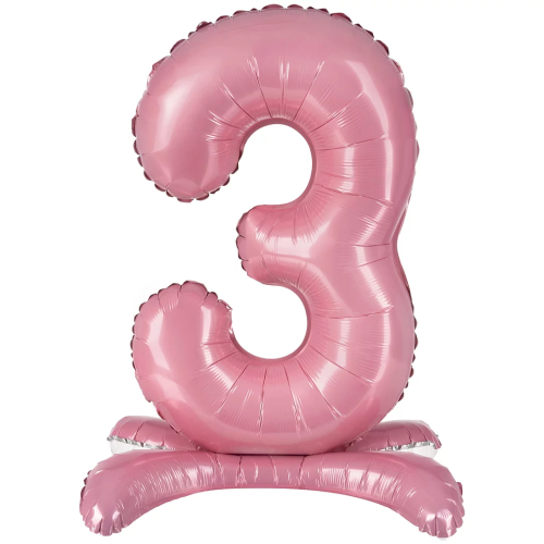Шар (32''/81 см) Цифра на подставке, 3, Розовый, 1 шт. в уп., 24143