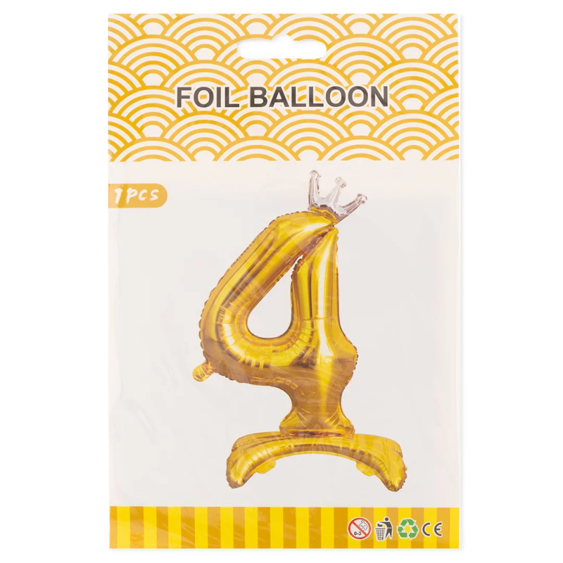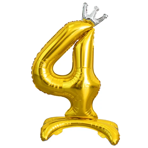 Шар (32''/81 см) Цифра на подставке, 4 Серебристая корона, Золото, 1 шт. в уп., 24184