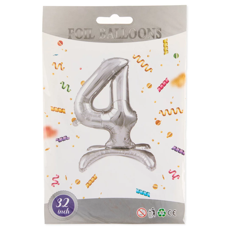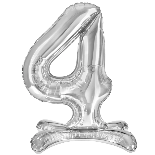 Шар (32''/81 см) Цифра на подставке, 4, Серебро, 1 шт. в уп., 24134