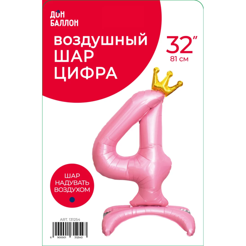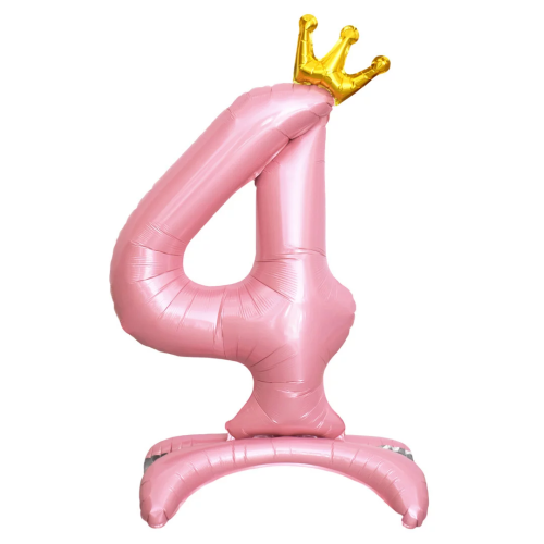 Шар (32''/81 см) Цифра на подставке, 4 Золотая корона, Розовый, 1 шт. в уп., 131254