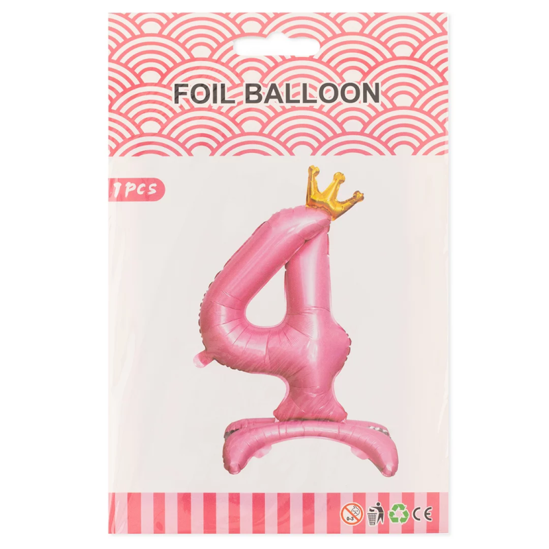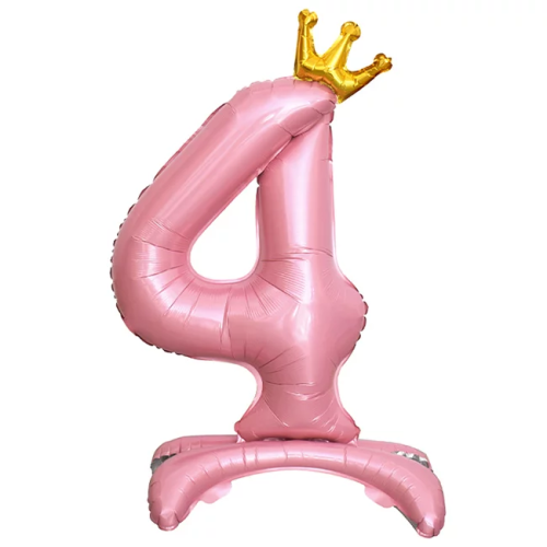Шар (32''/81 см) Цифра на подставке, 4 Золотая корона, Розовый, 1 шт. в уп., 24194