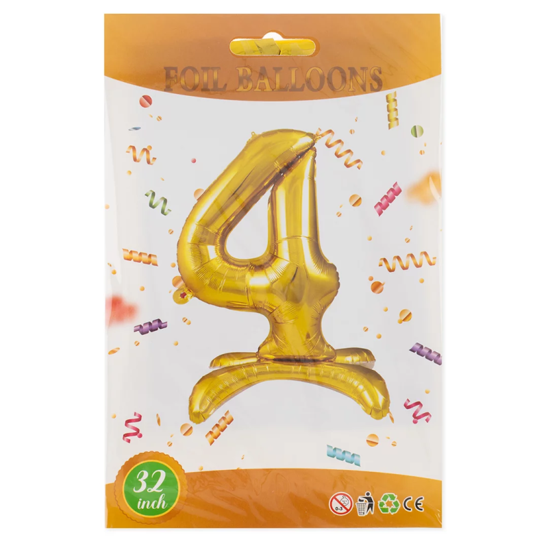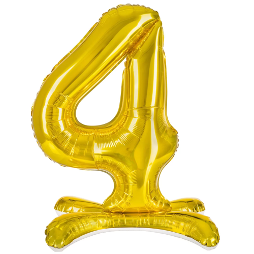 Шар (32''/81 см) Цифра на подставке, 4, Золото, 1 шт. в уп., 24124