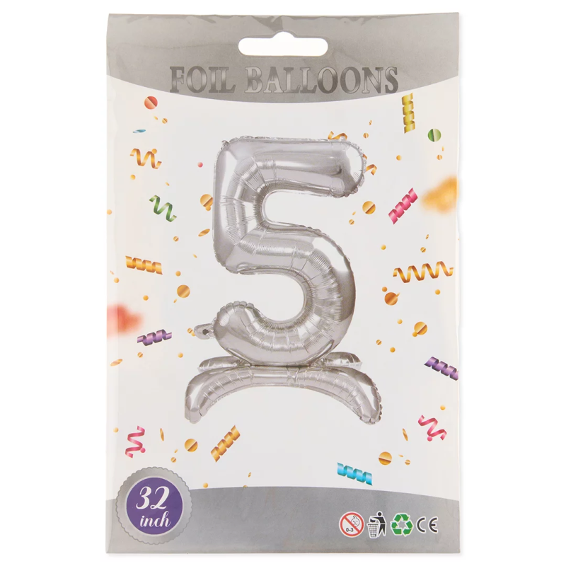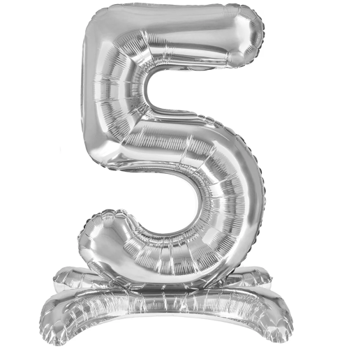 Шар (32''/81 см) Цифра на подставке, 5, Серебро, 1 шт. в уп., 24135