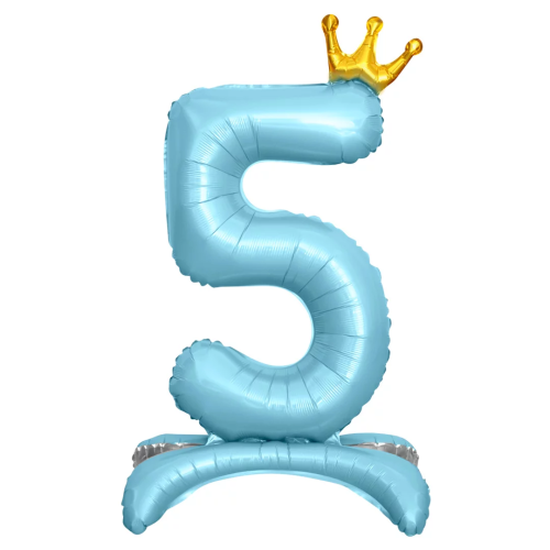 Шар (32''/81 см) Цифра на подставке, 5 Золотая корона, Голубой, 1 шт. в уп., 131265