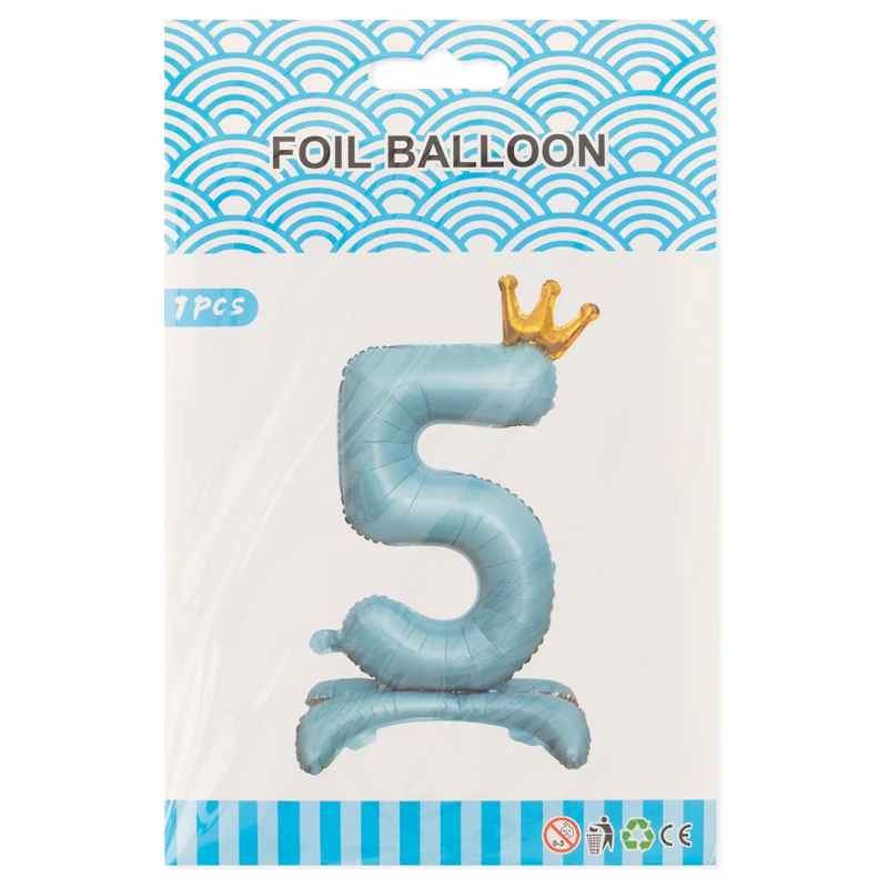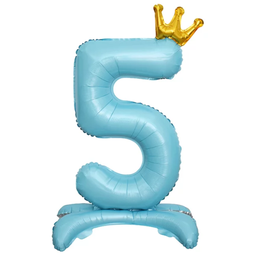 Шар (32''/81 см) Цифра на подставке, 5 Золотая корона, Голубой, 1 шт. в уп., 24205
