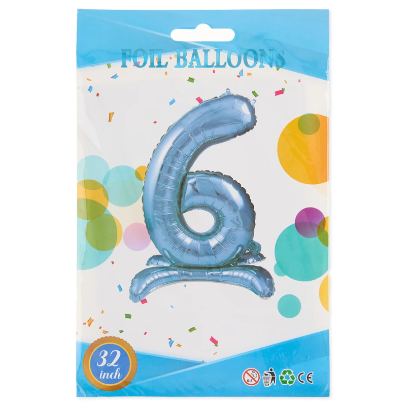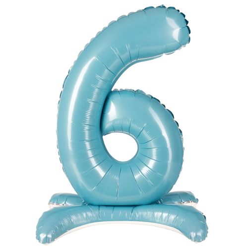 Шар (32''/81 см) Цифра на подставке, 6, Голубой, 1 шт. в уп., 24156