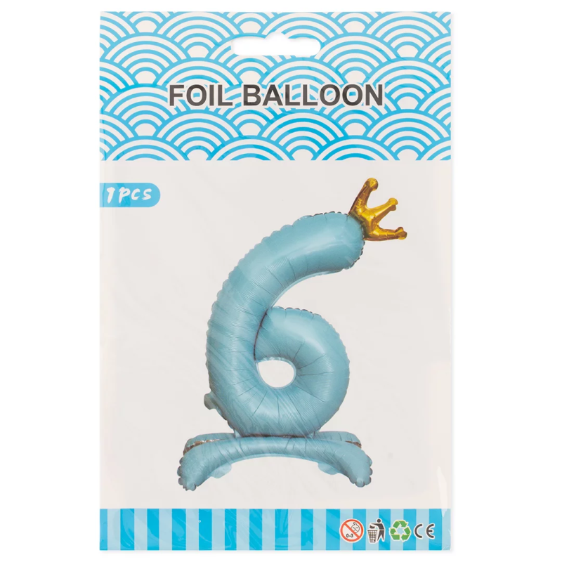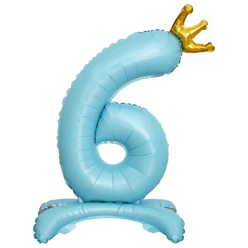 Шар (32''/81 см) Цифра на подставке, 6 Золотая корона, Голубой, 1 шт. в уп., 24206