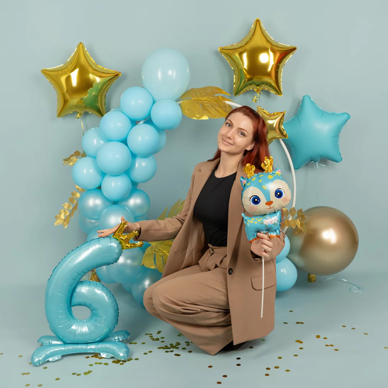 | Линейка | СмайлБерри Шар (32''/81 см) Цифра на подставке, Золотая корона, Голубой |