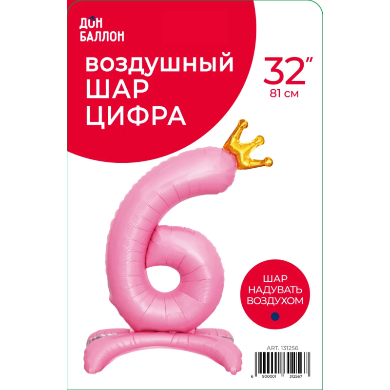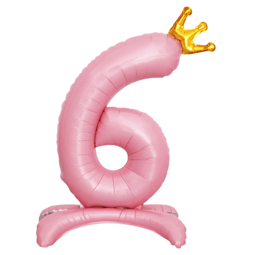 Шар (32''/81 см) Цифра на подставке, 6 Золотая корона, Розовый, 1 шт. в уп., 131256