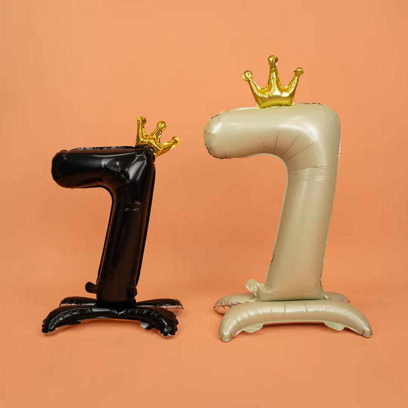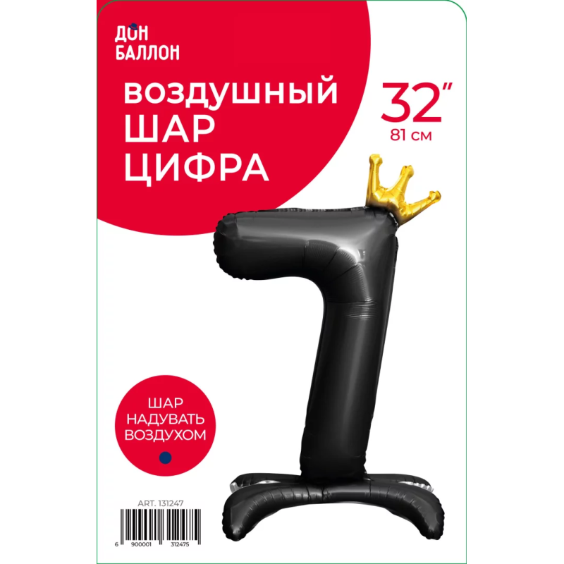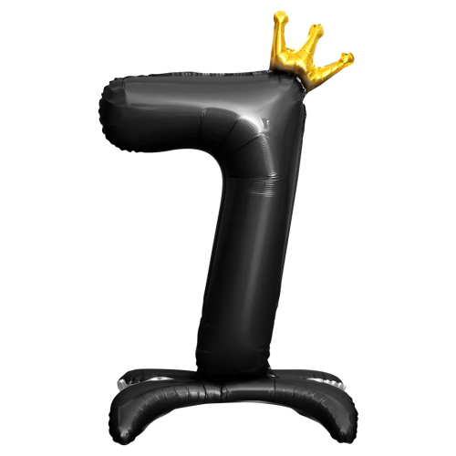 Шар (32''/81 см) Цифра на подставке, 7 Золотая корона, Черный, 1 шт. в уп., 131247