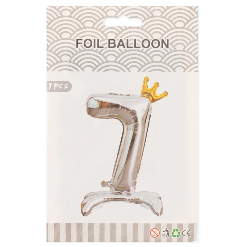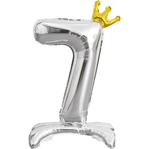 Шар (32''/81 см) Цифра на подставке, 7 Золотая корона, Серебро, 1 шт. в уп., 24177