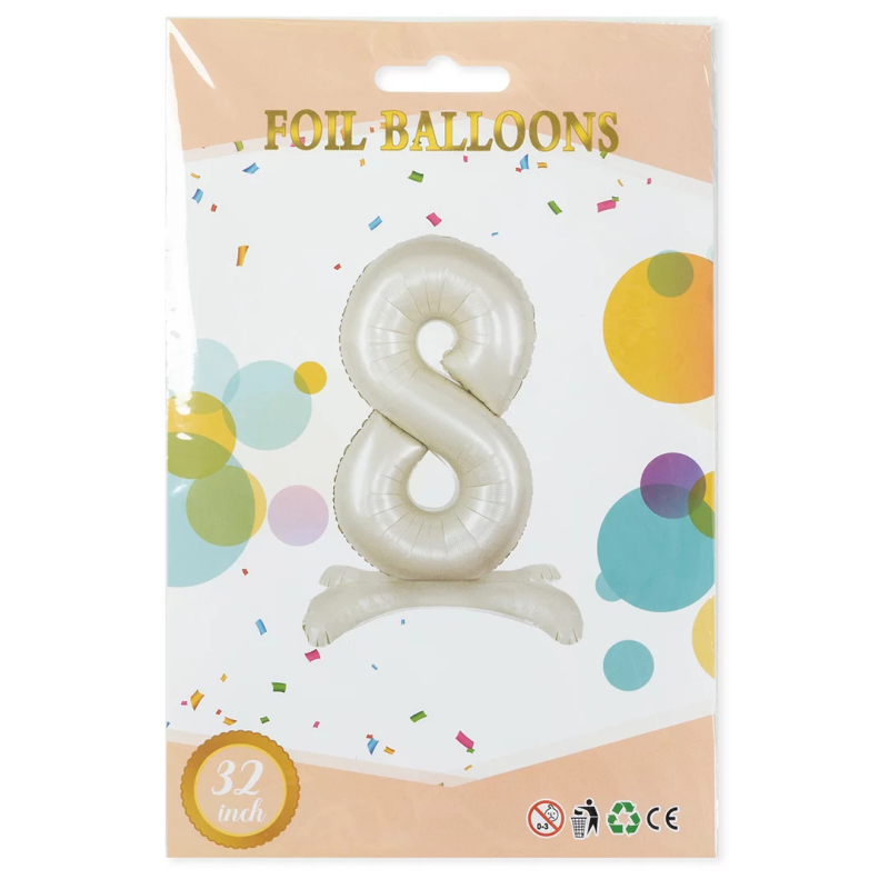 Шар (32''/81 см) Цифра на подставке, 8, Белый песок, 1 шт. в уп., 27518