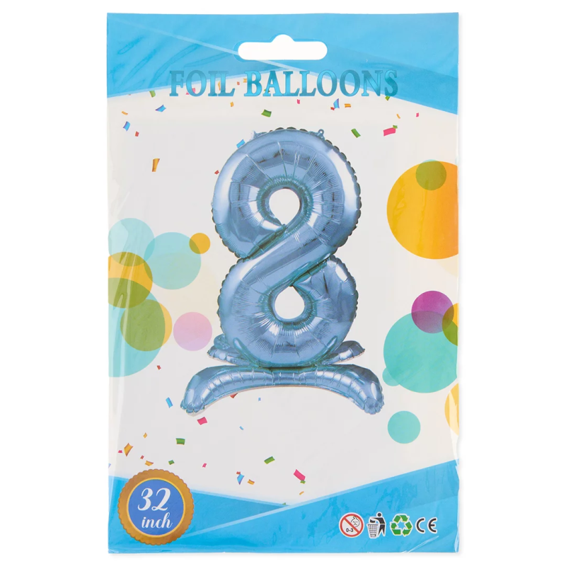 Шар (32''/81 см) Цифра на подставке, 8, Голубой, 1 шт. в уп., 24158