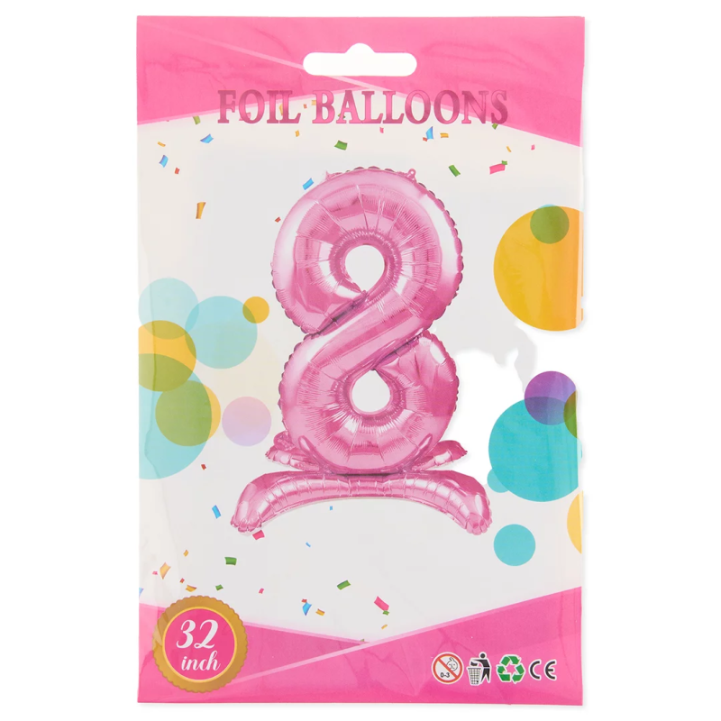 Шар (32''/81 см) Цифра на подставке, 8, Розовый, 1 шт. в уп., 24148