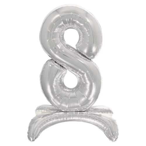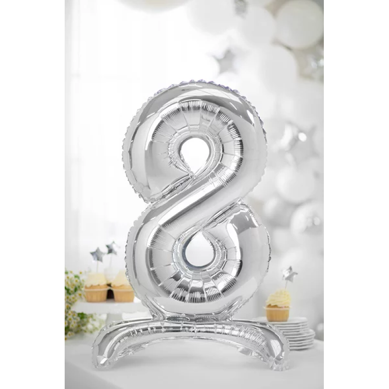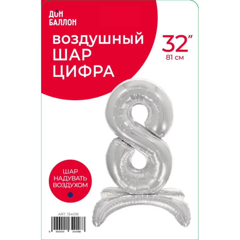Шар (32''/81 см) Цифра на подставке, 8, Серебро, 1 шт. в уп., 134018