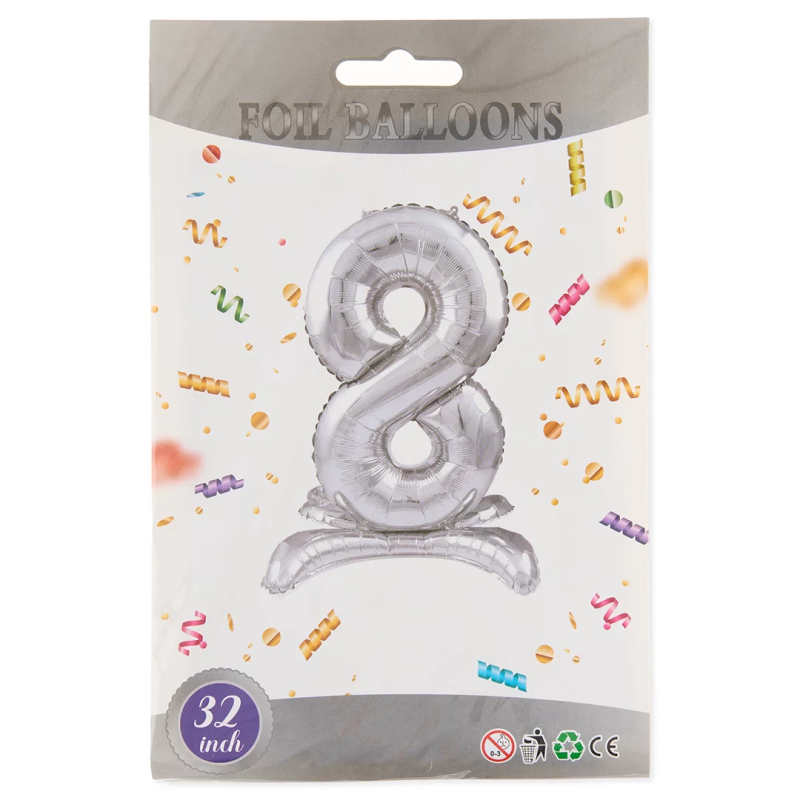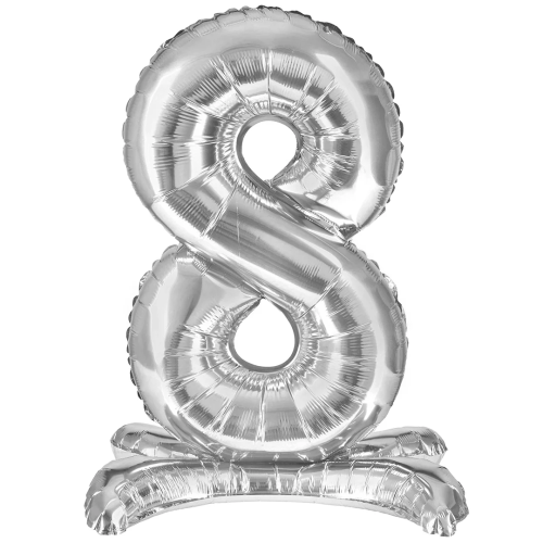 Шар (32''/81 см) Цифра на подставке, 8, Серебро, 1 шт. в уп., 24138