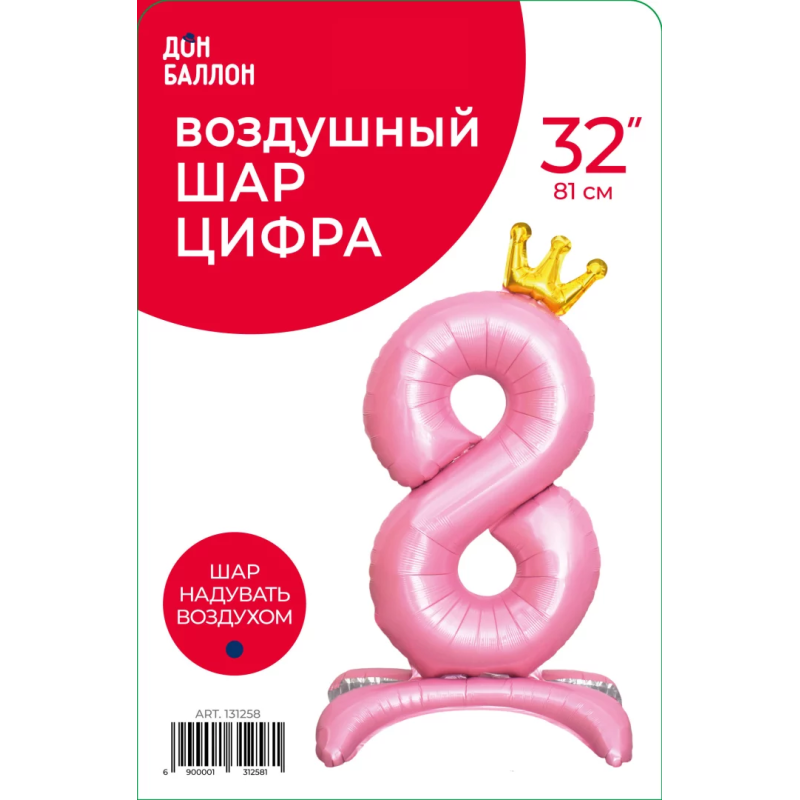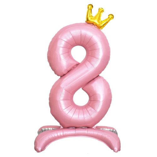 Шар (32''/81 см) Цифра на подставке, 8 Золотая корона, Розовый, 1 шт. в уп., 131258