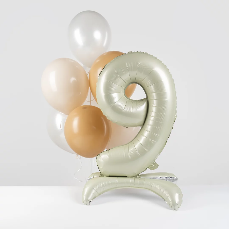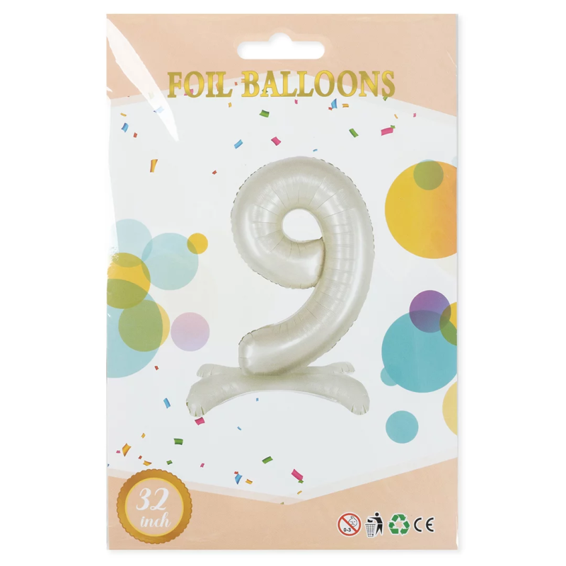 Шар (32''/81 см) Цифра на подставке, 9, Белый песок, 1 шт. в уп., 27519
