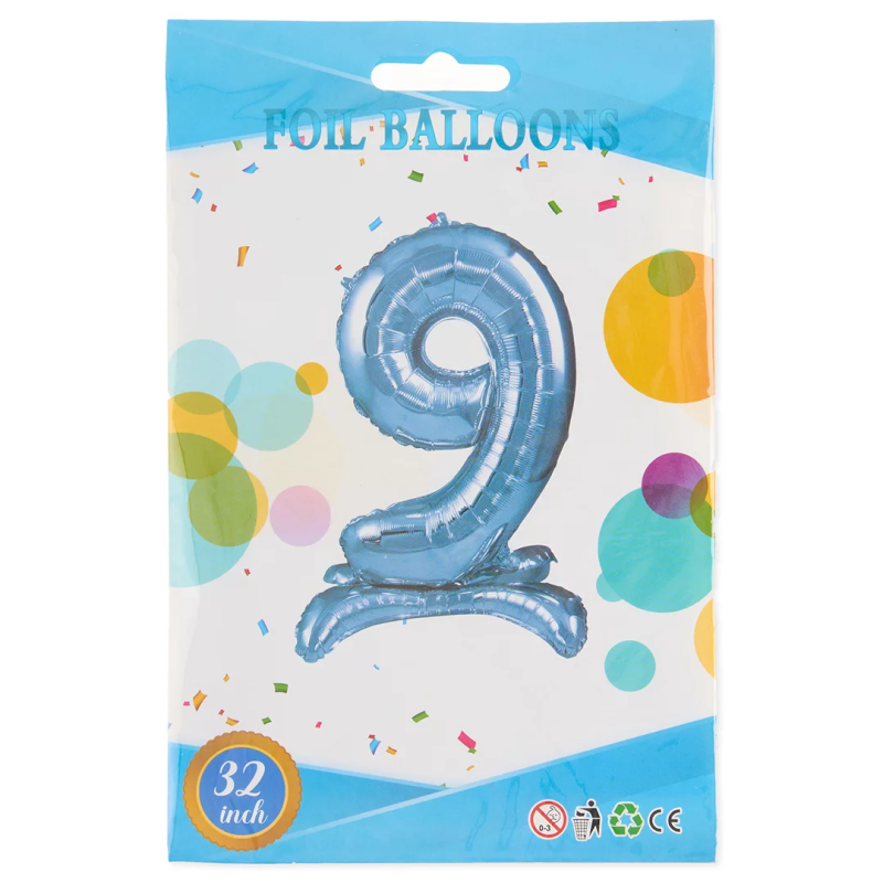Шар (32''/81 см) Цифра на подставке, 9, Голубой, 1 шт. в уп., 24159