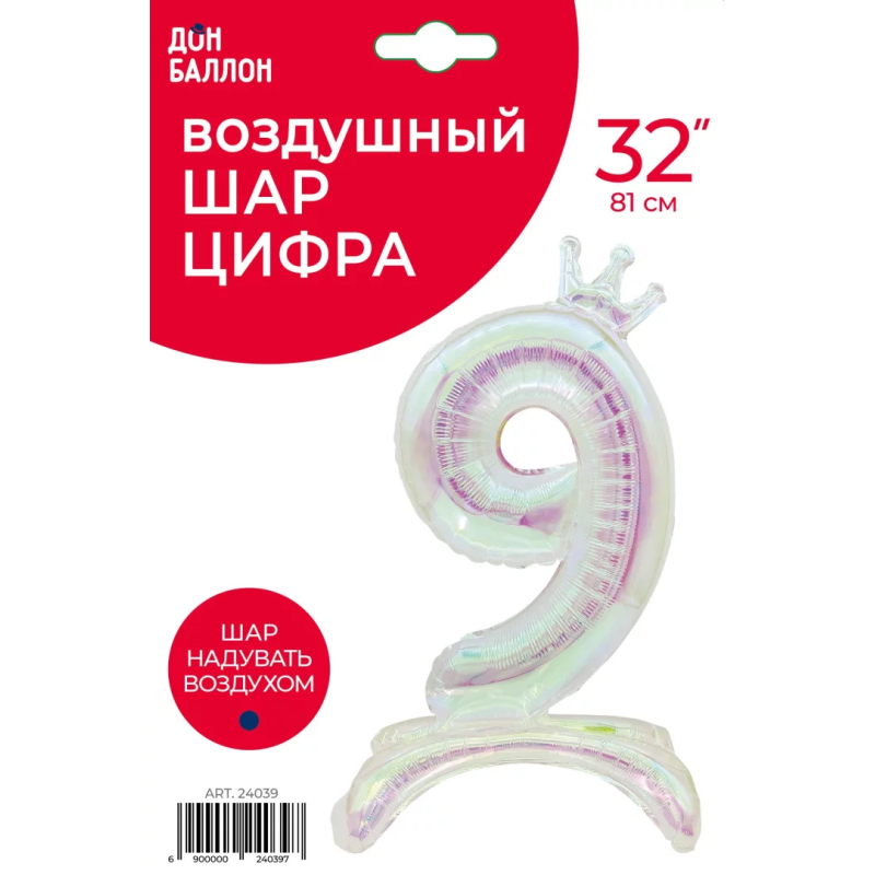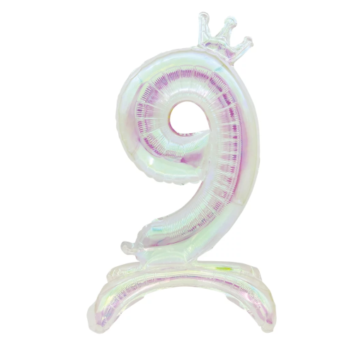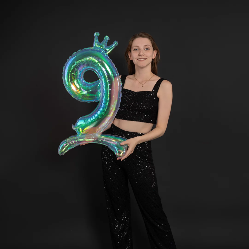 Шар (32''/81 см) Цифра на подставке, 9 Корона, Хамелеон, Хамелеон, 1 шт. в уп., 24039
