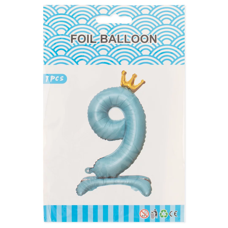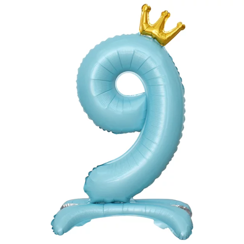 Шар (32''/81 см) Цифра на подставке, 9 Золотая корона, Голубой, 1 шт. в уп., 24209