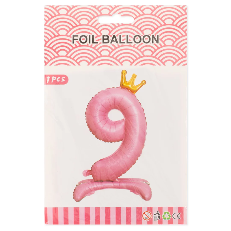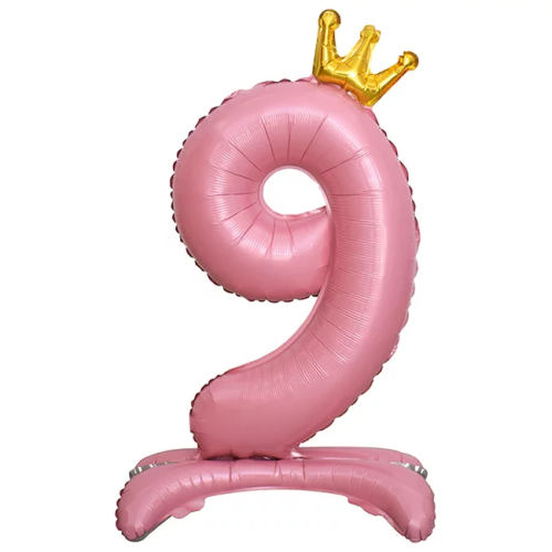 Шар (32''/81 см) Цифра на подставке, 9 Золотая корона, Розовый, 1 шт. в уп., 24199