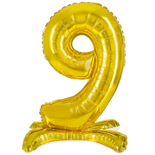 Шар (32''/81 см) Цифра на подставке, 9, Золото, 1 шт. в уп., 24129