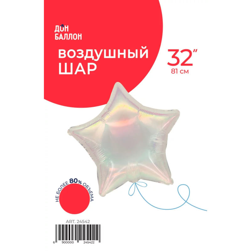 Шар (32''/81 см) Звезда, Прозрачный, Хамелеон, 1 шт. в уп., 24542